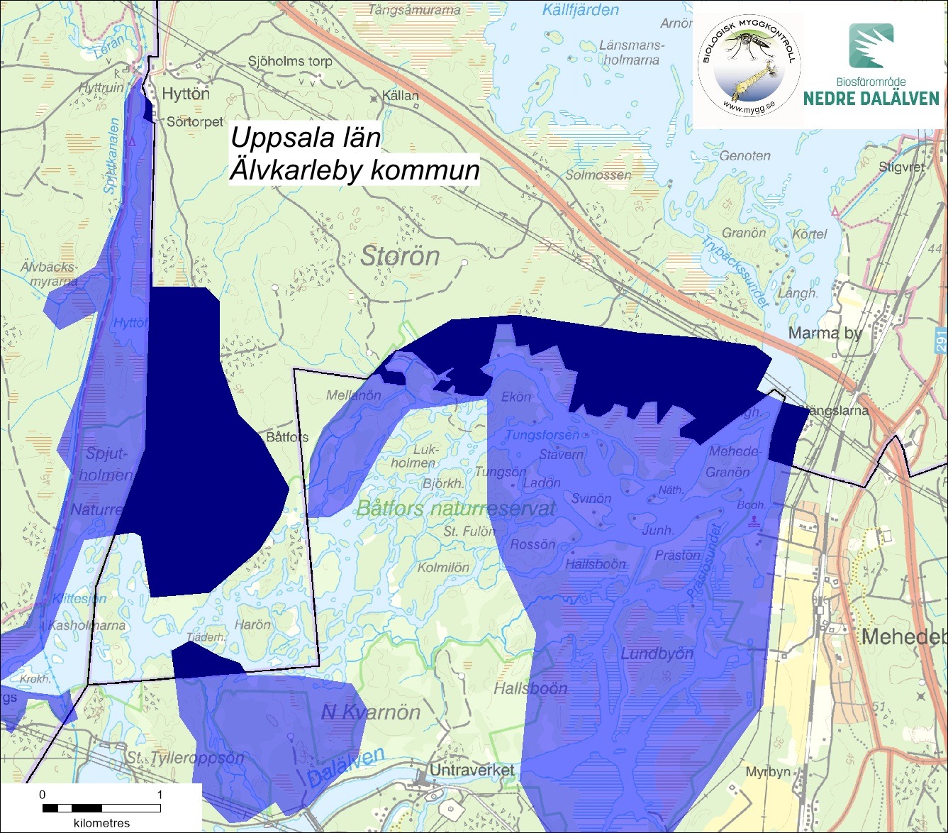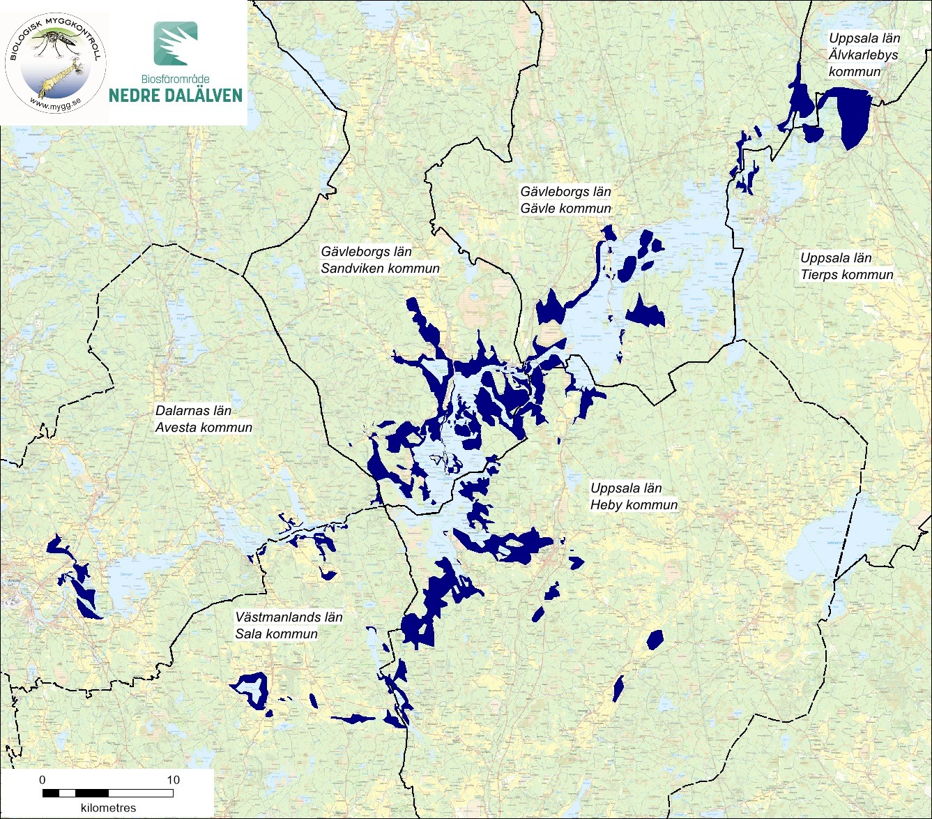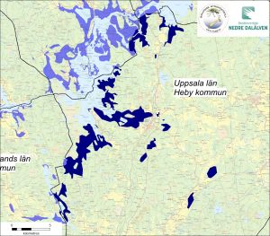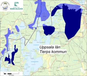 Uppsala län: 4322 ha i Heby kommun, 1165 ha i Tierp kommun och 411 ha i Älvkarleby kommun
